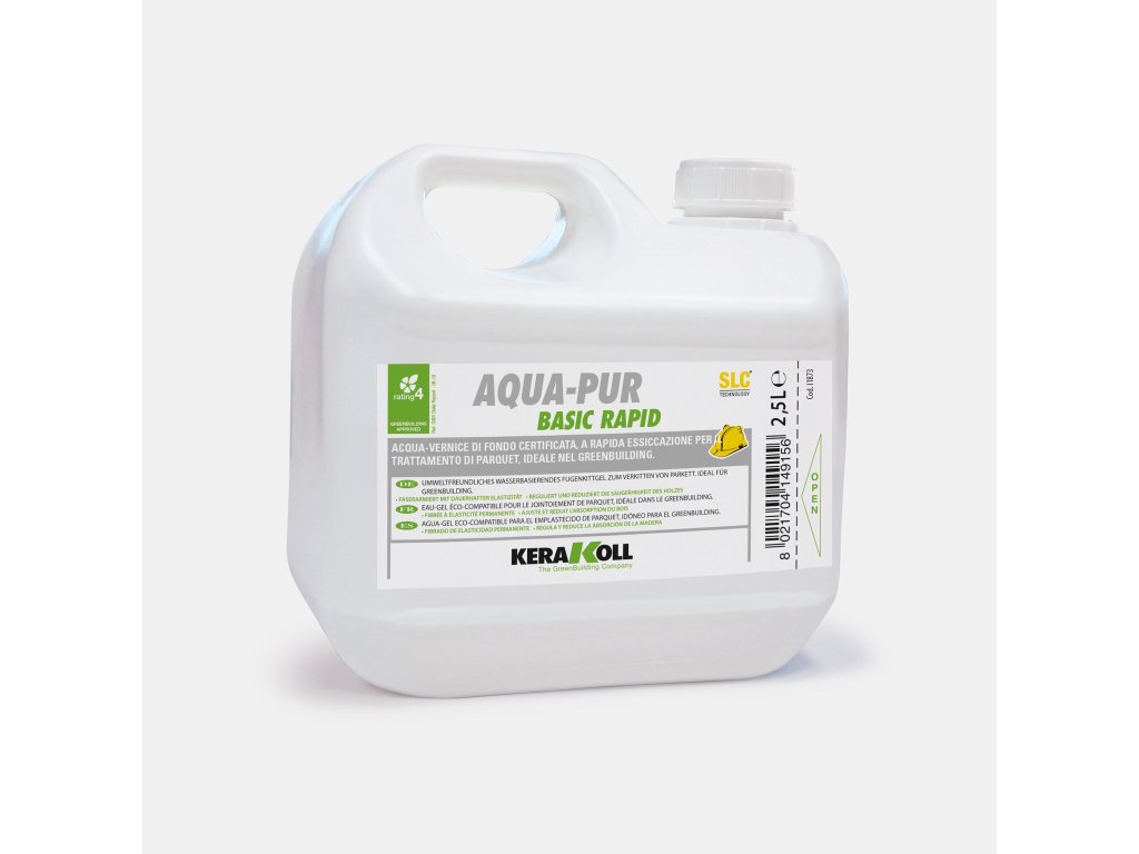 | ? Aqua‑Pur Basic Rapid: | Eko-kompatibilní, rychleschnoucí základový lak na vodní bázi pro ošetření parket, ideální pro GreenBuilding |
