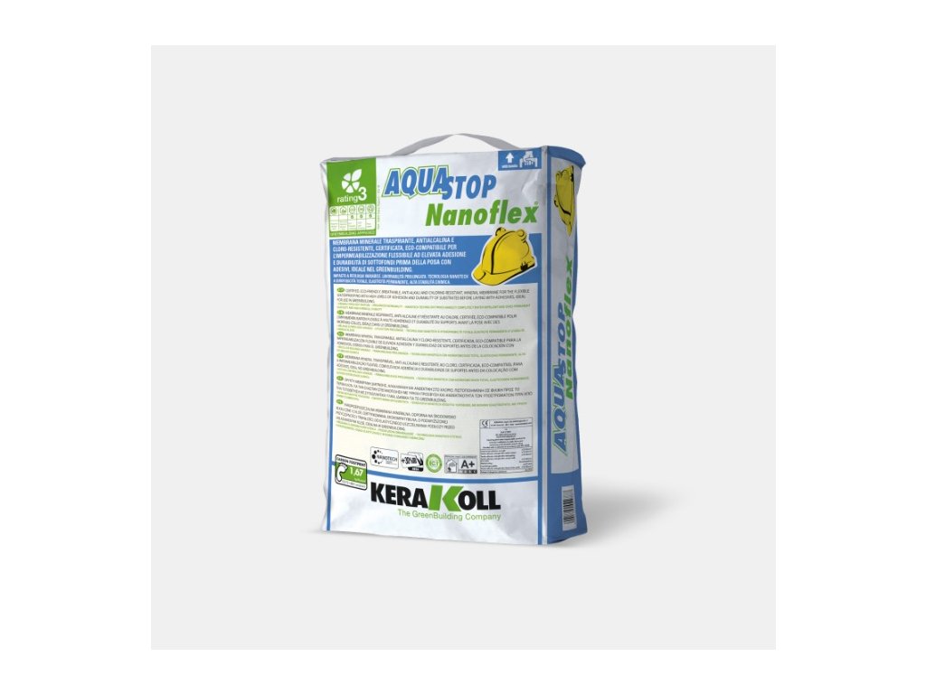 Aquastop Flex Eko-kompatibilní, certifikovaná minerální dvousložková hydroizolační membrána, odolná alkalickým látkám a chlóru, pro vysoce pružné a trvanlivé...