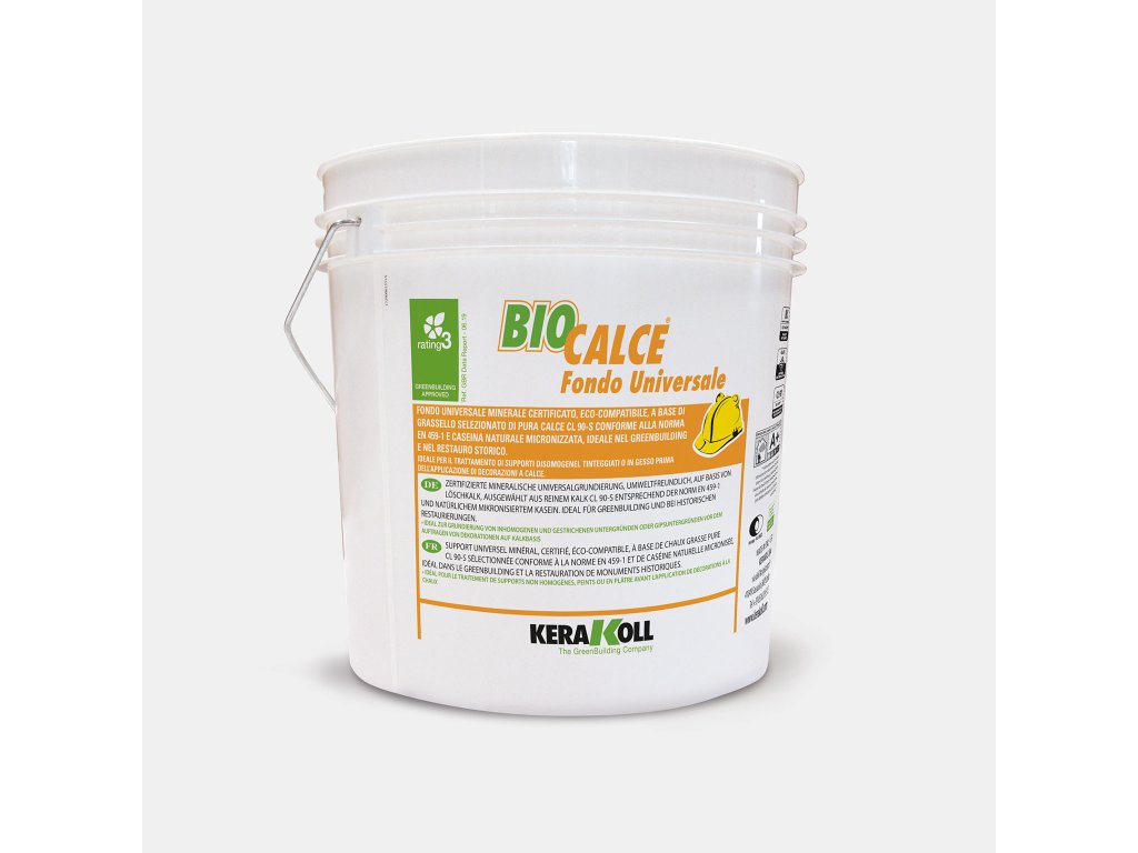 | Biocalce® Fondo Universale: | Eko-kompatibilní, univerzální základní sjednocující minerální nátěr na bázi hašeného bílého vápna CL 90‑S v souladu s normou EN |