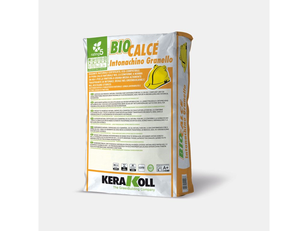 | Biocalce® Intonachino Granello: | Eko-kompatibilní přírodní dokončovací omítka obsahující čisté vápno NHL 3.5, vápno, vyhovující normě EN 459-1 pro vysoce prodyšn |