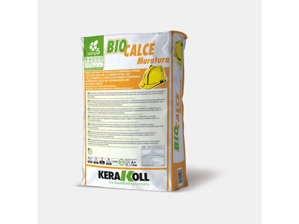 | Biocalce® Muratura: | Eko-kompatibilní přírodní malta z přírodního čistého vápna NHL 3.5, dle normy EN 459-1, určená pro vytvoření vysoce prodyšného m |