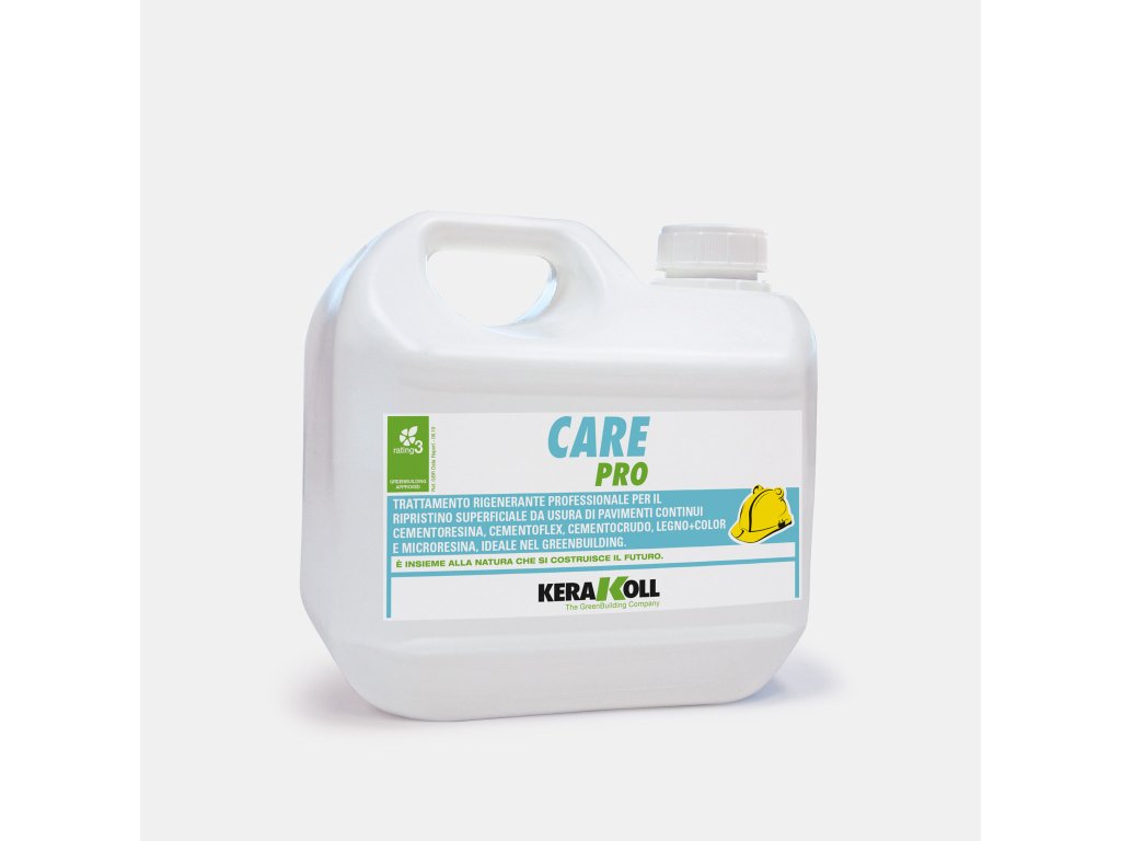 | ? Care Pro: | Eko-kompatibilní, profesionální samolešticí regenerační prostředek pro obnovu opotřebovaných litých podlah Cementoresina®, Microresina® Floor a Microresina® Parquet, ideální pro GreenBuilding. |